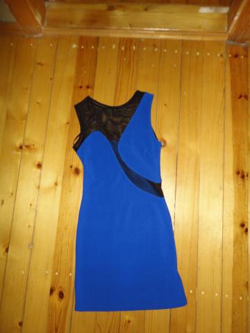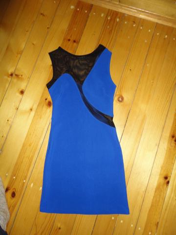 Mėlynos ryškios spalvos suknelė, pirkta ne Lietuvoje.