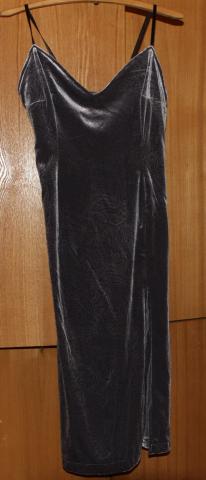 Siūta pagal užsakymą kokteilinė suknelė, tinka XS-S. Skeltukas priekyje gana gilus, bet subtilus.