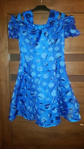 Suknelė nešiota vieną kartą, tačiau labai senai. Mergaitei suknelė butų iki kelių, o lieknai panelei suknele butų sprindžiu virš kelių.