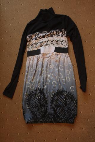 Suknelė tampri, nešiota vieną kartą. Dydis rašo M, bet sakyčiau, kad labiau S/M.