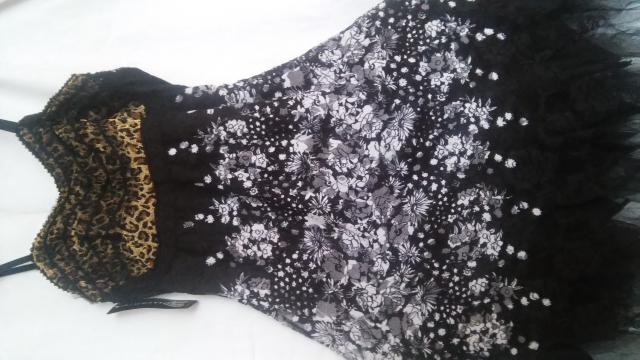Nauja suknelė. Juoda papuošta su tigrine medžiagėle ir apačioje esantys tiuliai.