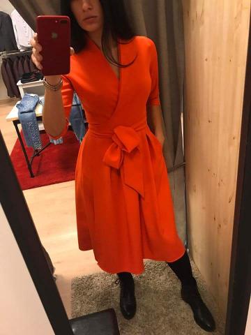 Parduodama susiaučiama suknelė. Nauja (netiko dydis). Spalva: klasikinė raudona. Išmatavimai: krūtinės apimtis - 100cm; liemens - 86cm; ilgis - 96cm; Audinio sudėtis: viskozė -60%; poliamidas - 20%; poliesteris - 15%; elastanas - 5%. Kreiptis tel. 8699 36777.