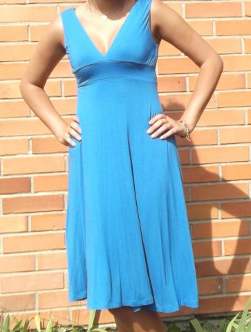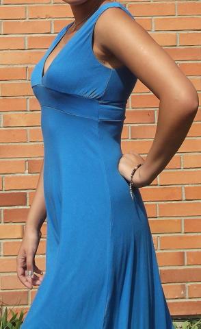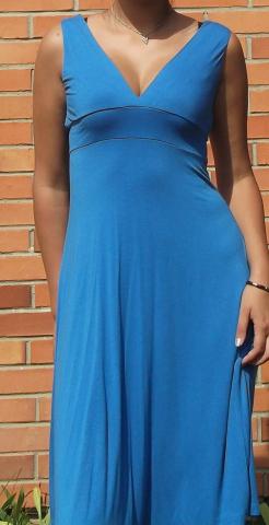 Visiškai nauja, ryškiai mėlyna suknelė.
