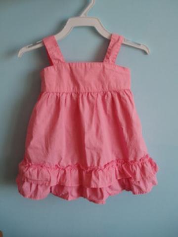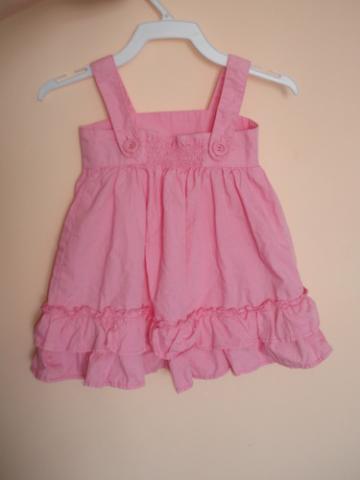 Tinka 9-12 mėnesių (78cm) mergytei. Mažai nešiota. Suknelės viršaus plotis (per siūlę) ~21cmx2 (dar šiek tiek tempiasi, nes nugaroje yra įsiųta guma. Visas suknelės ilgis (be šleikučių) ~ 32cm (priekyje) ir ~ 30cm (nugaroje). Visos vienos šleikutės ilgis ~ 19,5cm. Papildomos sąlygos: + siuntimas 2lt (papr.); 4LT (reg.). Kaina: 12.00 Lt Plačiau: http://www.manodrabuziai.lt/drabuziai/vaikiski/kudikiams/sukneles/1080092-suknyte-zara-baby
