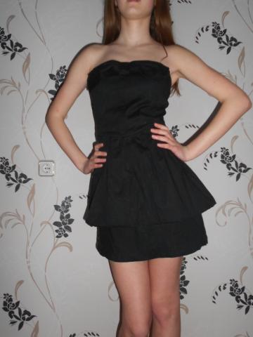 Labai grazi suknele,su dvigubu sijonu ir kaspinu ant krutines :) nuotraukoje neislyginta,todel atrodo nelabai taip,kaip realybeje. ir Spalva realybeje ryskiai juoda :)