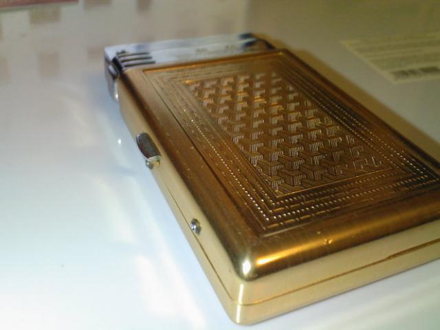 Dėtuvė jūsų megiamiausoms suktinukėms:) Atsidaro paspaudus knopke ant šono, paimat suktinukę, uždarot ir tuo pačiu užsidega imontuotas žiebtuvėlis. Vat:) Paprastos cigaretės deja netelpa. Naudotas, kartais neužsidega žiebtuvėlis. Pildosi žibalu ar benzu