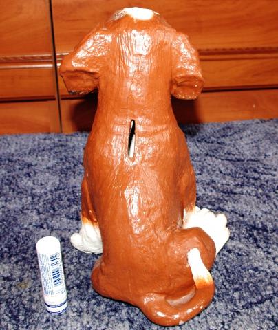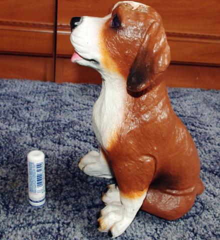 30cm aukščio, 15cm pločio.Taupyklės dugnas (atidarymo vieta) gipsinis, neišlaužtas. Ant galvos nubirėjo dažai.
