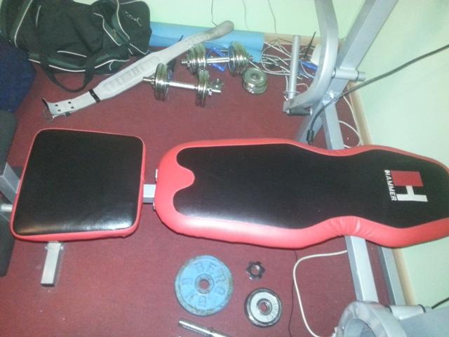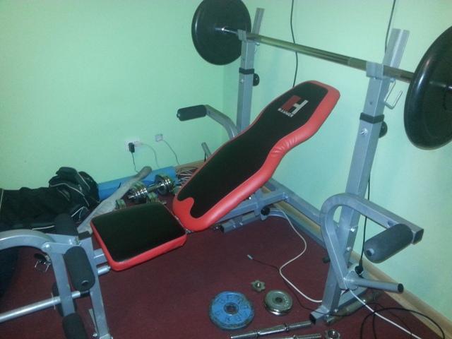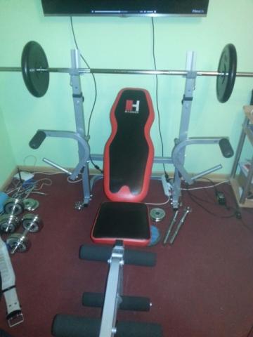 Suoliukas kartu su štanga ir svoriais (2x25 kg)