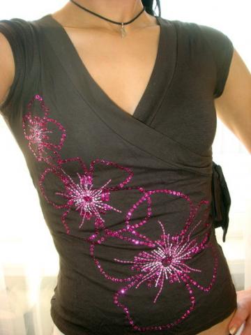 Mažai nešiota, tampri palaidinė su blizgančiom gėlytėm su kaspinėliu ant šono. Dydis XS/S