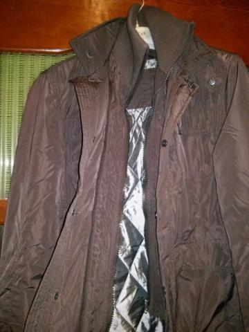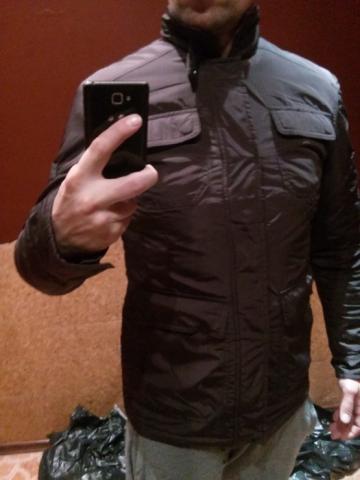 Blizgios neteplios medziagos. Vidutinio storumo ir vesiam ir saltam orui tiks. Isisega paplatinimas rengiantis ant storesniu drabuziu, paplatinimas ir su dvigubu paaukstintu kaklu, dvigubas uzsegimas gaunasi. Matosi nuotraukose ir su ir be praplatinimo. Bukle beveik nauja, deveta pora kartu. 180 cm vidutinio sudejimo vaikinas. S/M dydis.
