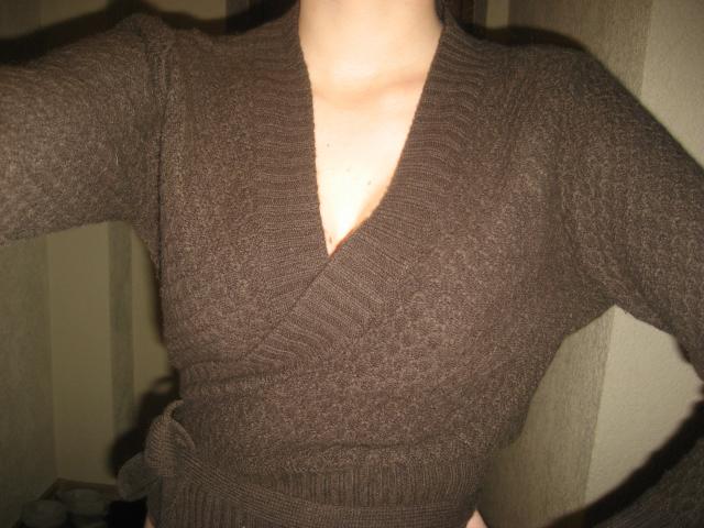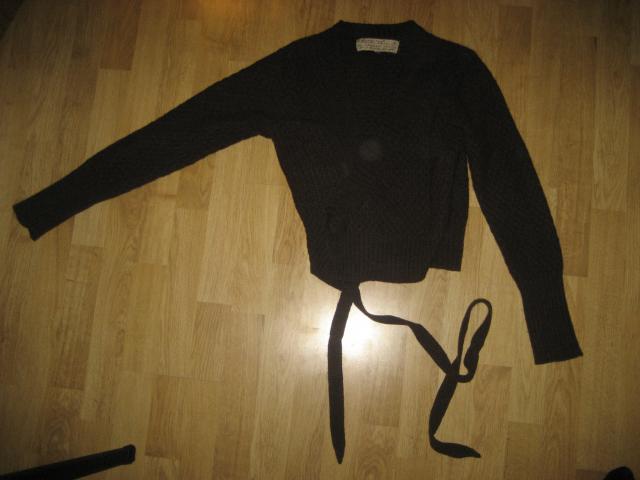 rudas, šiltas, nenešiotas megztukas, surišamas.