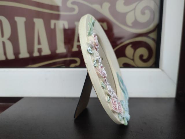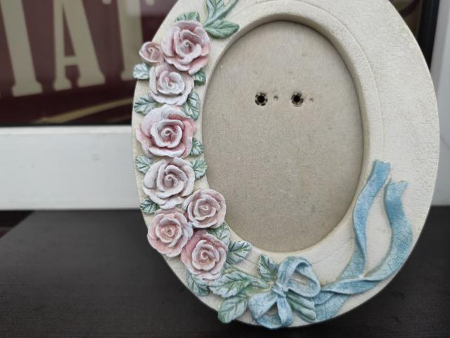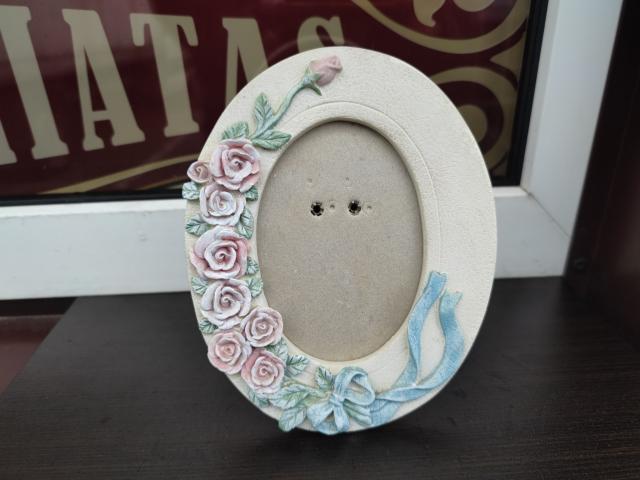 Sustiprinto plastiko pluošto ovalinis rėmelis nuotraukai su rožytėm.