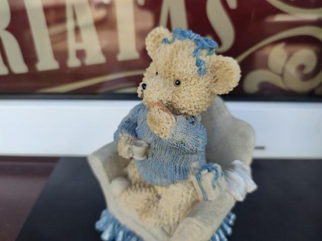 Sustiprinto plastiko pluošto statulėlė Meškutė ant fotelio.