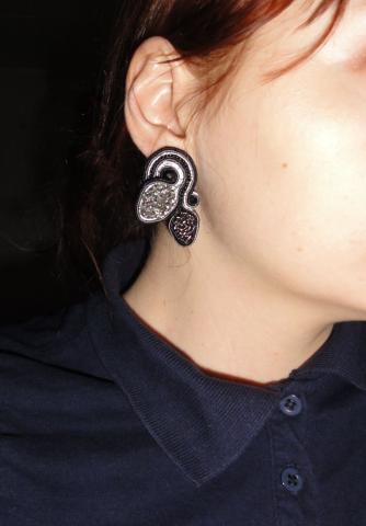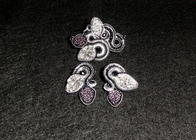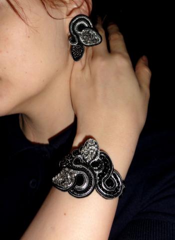 Rankų darbo sutažo rinkinukas - auskarai ir apyrankė. Išskirtiniai ir vieninteliai.