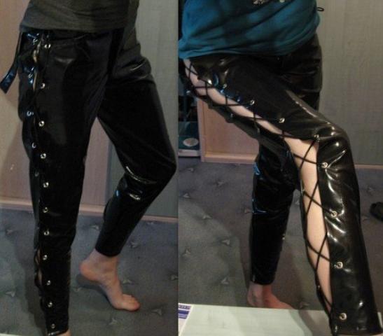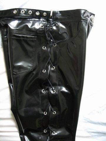 Per visą ilgį suvarstomos pvc kelnės, yra 4 kišeniai, taip pat du dirželiai ties sonais. Jei sudimino ar turit klausimų- rašykit :)