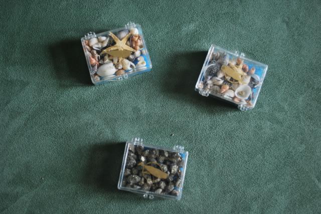 Mini suvenyriukai iš už Atlanto. Kriauklės su smėliu ir dar kažkas iš Nantucket salos.