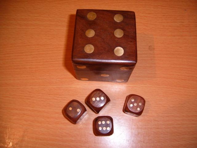 Mediniai lošimo kauliukai, mėgstantiems žaisti azartinius žaidimus su draugais.