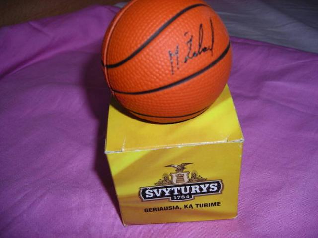 Suvenyrinis kamuoliukas su krepšininkų parašais