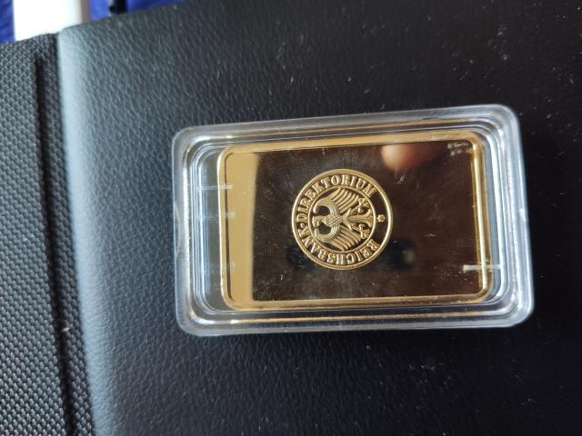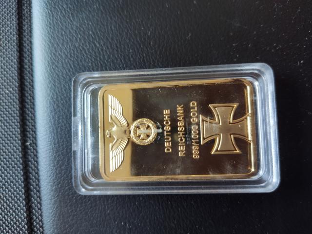 Suvenyrinis Vokietijos "aukso" luitelis kapsulėje. Material: iron inside gold plated