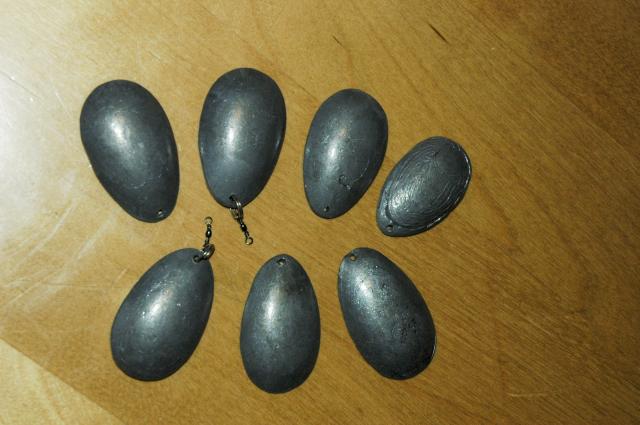 Švininiai svareliai žvejybai. Senoviniai rankom daryti, svoris visų kiek skiriasi 1 vnt. nuo ~ 92 g - 110 g. Jei domina susisiekite su manimi :) Turiu 7 vnt. Mielai mainau į man patinkančius daiktus. :)