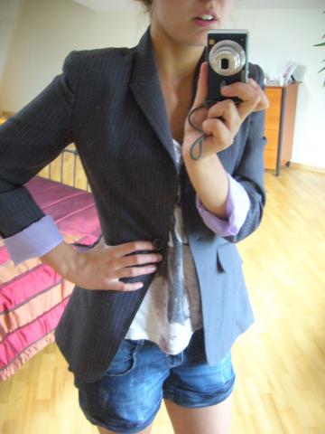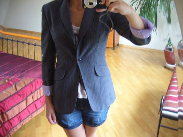 Gražus ir labai praktiškas švarkas,nes jį galima skalbti namie,nebūtina nešti į valyklą,kaip daugumą švarkų. (: Gražiai atsiraitoja rankovės,tačiau galima nešioti ir ilgom rankovėm. Švarkas yra ilgesnis,tad aš esu 1,72,tačiau dengia klubus. Taigi,stilingas. (: Taip pat šiaip dydis kaip ir S,nes tada gal gražiau per krūtinę sueina,tačiau aš nešioju M dydį ir puikiai jis man tiko (: