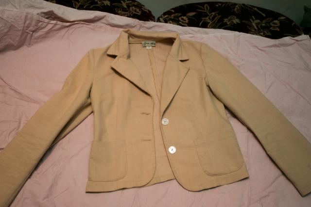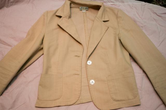 Prie šito švarkelio yra dar sijonas, tik jis liko kitam mieste. Be pamušalo, vasarinis, labai faina medžiagytė