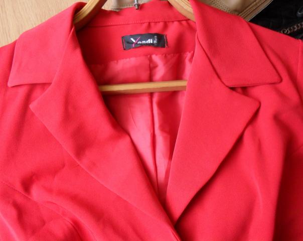 Raudonas švarkelis, parvežtas iš Prancūzijos, labai geros kokybės, lengvos ir patogios medžiagos. Jei,kas domina-klauskite