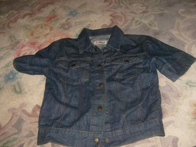 džinsinis švarkelis trumpom rankovėm. puikiai atrodo ant palaidinių ilgom rankovėm.