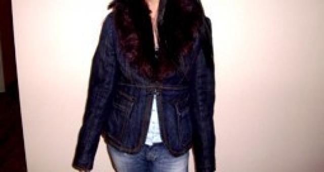 dzinsinis svarkelis striukyte,su vieoletiniu kailiuku,galima ji ir nuimt,ilemenuotas