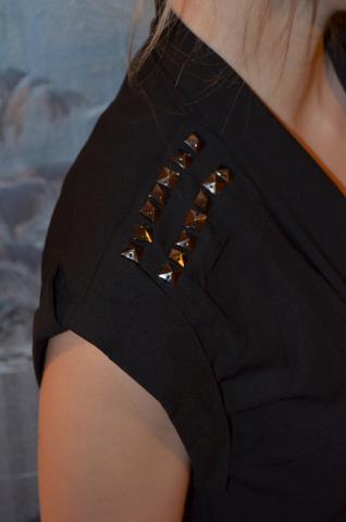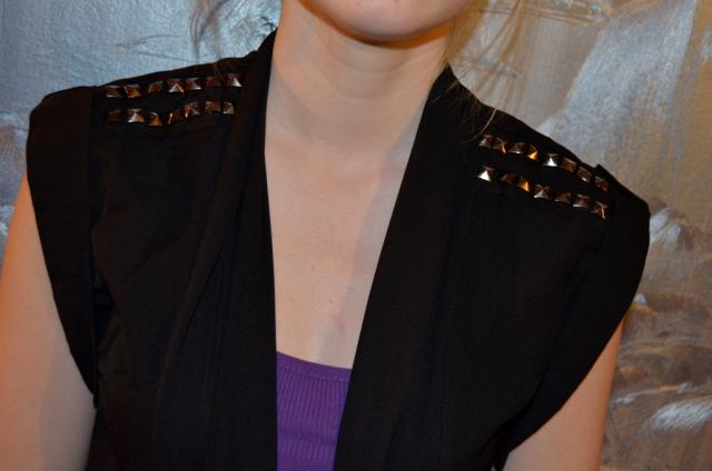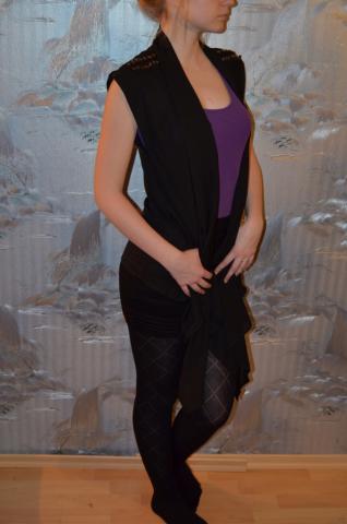 NAUJAS/Originalus švarkelis su kniedėmis. Gražiai išryškina pečių linijas.Priekyje ilgos "juostos" kurias galima nešioti paprastai, surišti į kaspinėlį ar apjuosti aplink liemenį ir gražiai užrišti nugaroje, kitaip tariant yra daug būdų kaip atrodyti kiekvieną kart kitaip su tuo pačiu drabužėliu.Labai smagi, švelni, maloni ir plona medžiagytė. Yra dvi kišenėlės. Dėl išsamesnės informacijos prašau rašykite - stengsiuos atsakyti kuo greičiau