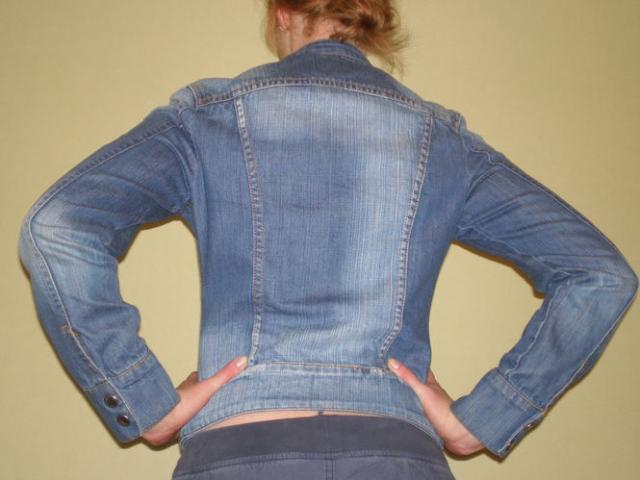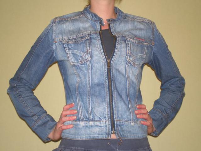 Dzinsinis svarkelis, mazai nesiotas. Dydis raso L, bet labiau M