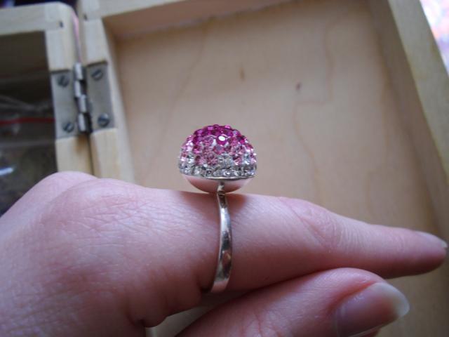 Nuostabaus grozio spindintis ziedas su svarovski kristalais. Metalas - sidabras 925 prabos. Dydis apie 17-18.