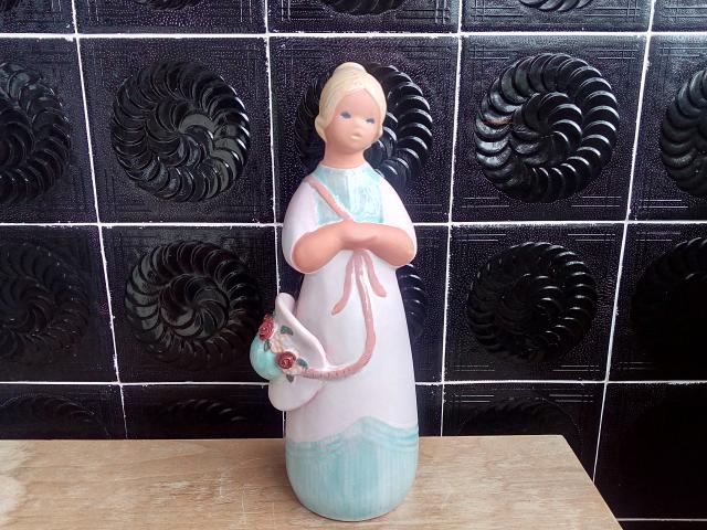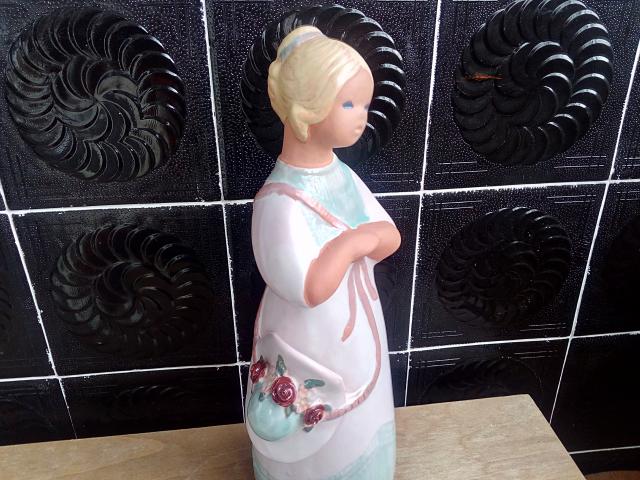 Švediška Jie Gantofta keramikinė statulėlė Moteris su gėlėta skrybėle.
