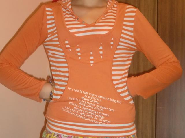 Švelniai priglundanti orandžinė maikutė su kapišonu :)