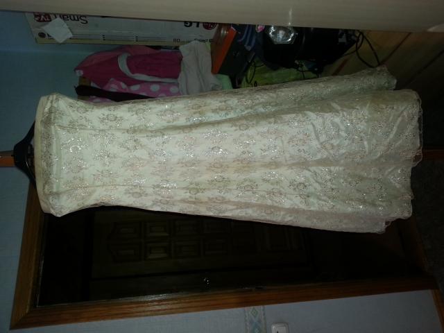 labai grazi ir sventine suknele, ilga ,gale yra korsetas. Naudota viena kart. Pirkta airijoj. dydis s/m 6/8 .