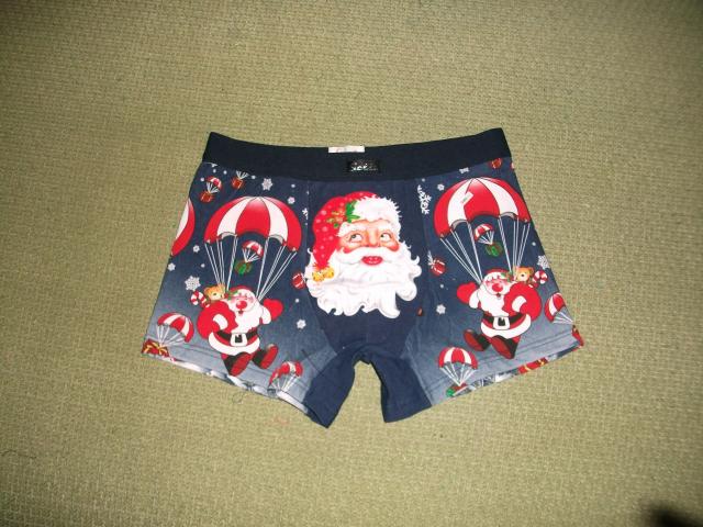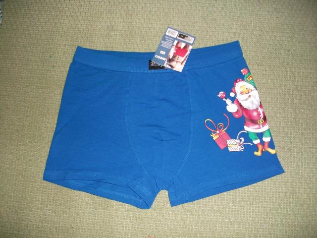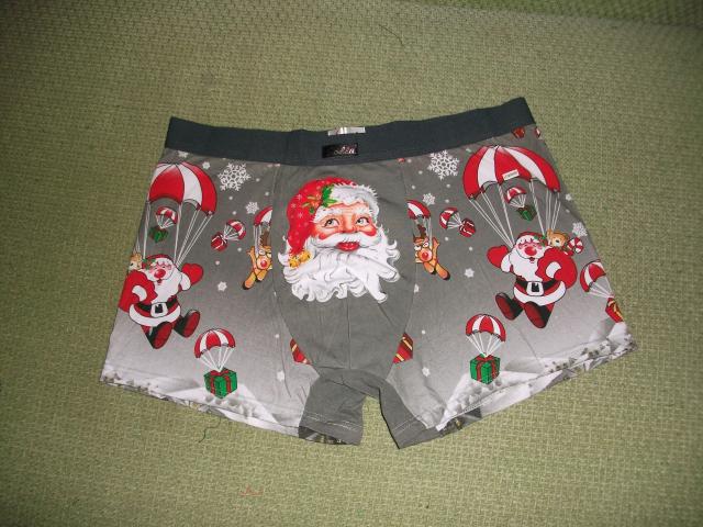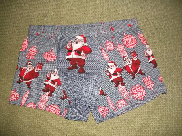 naujos vyriškos trumpikės įvairių dydžių ir spalvų su šventiniais piešinukais.
