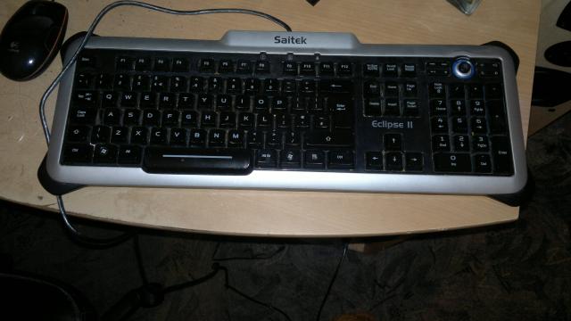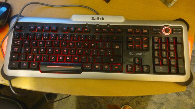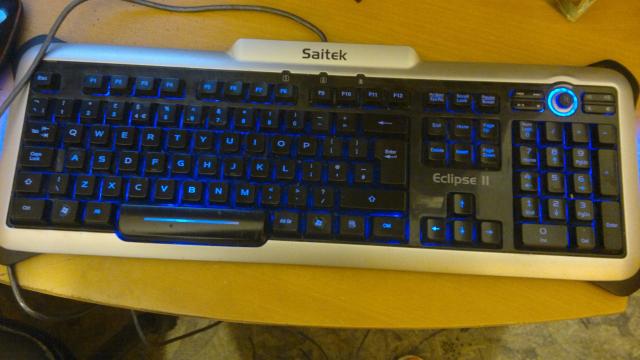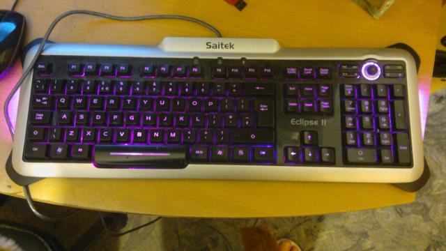 SAITEK ECLIPSE II, Šviečia trimis spalvomis mėlyna, raudona ir violetinė. Yra apšvietimo stiprumo reguliatorius ir spalvos jungiklis.