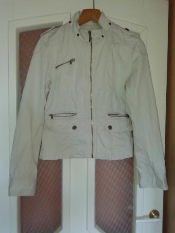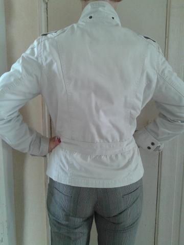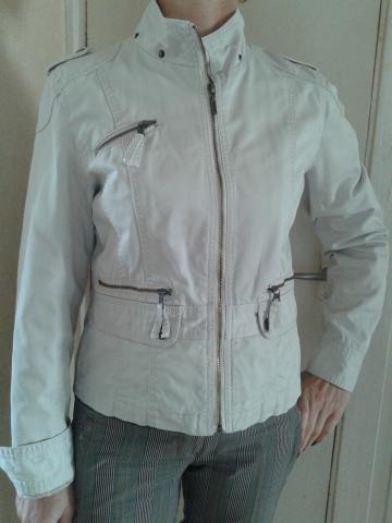 Striukė sportinio stiliaus, labai gerai nešiojasi, nors šviesi, bet visai netepli. Nors audinio sudėtis 100% cotton, išskalbus lyginti beveik nereikia. Yra kyšenyčių, truputį įliemenuota. Ilgis 56 cm, rankovės 62, krūtinės apimtis 48x2, liemuo 41x2.