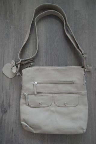 Nauja šviesi rankinė (dirbtinė oda), užsegimas - užtrauktukas. Viduje 2 kišenėlės. Išmatavimai: plotis 30 cm, ilgis 30,5 cm