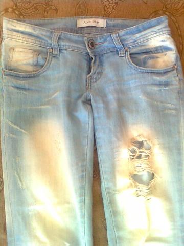 Stilingi praplesyti tiesus sviesiai melyni dzinsai vasarai; l. geros bukles, parduodu, nes pasidare per mazi. :/