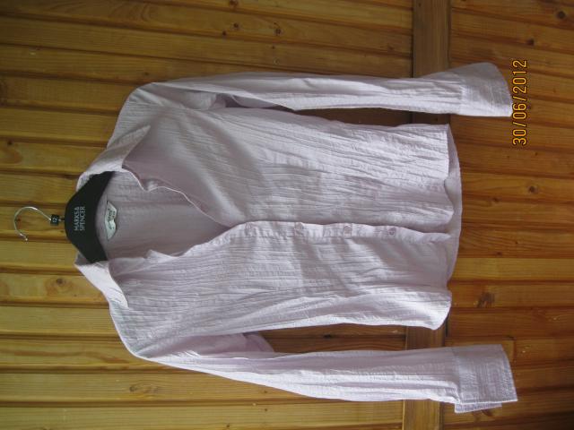 Glamzytos medziagytes, ilgomis rankovemis marskinukai 36 dydzio arba 8 dydzio. Nuotraukoje atrodo balti,bet is ties sviesiai sviesiai violetiniai (alyviniai).