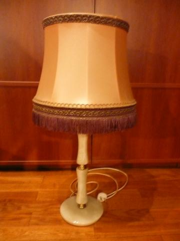 Šviestuvas su onikso kojele. Aukštis su gaubtu 60 cm.