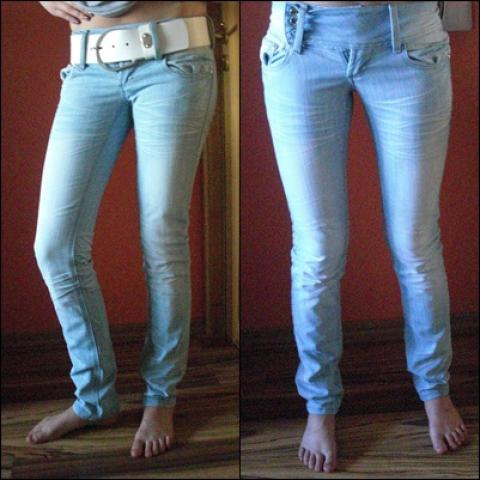 Labai grazus šviesus dzinsai. Kaip tik vasarai ! su 3 saguemis uzsisega. Galima issiverti platu dirza, kuris labai dailiai pabrezia liemeni. :) dydis 36/S.
