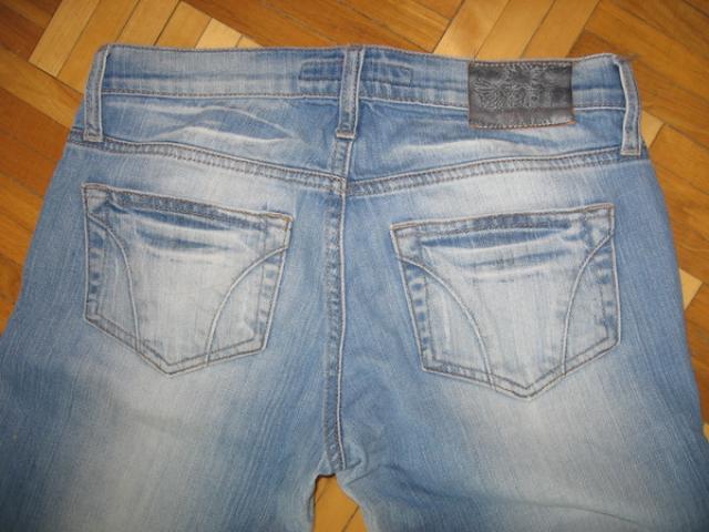 Be defektų (nuotraukose daug šešelio krito, vėliau įkelsiu geresnių). Labai dailūs šviesūs džinsai pažemintu liemeniu. Kaina derinama. Išmatavimai: ilgis - 103cm, nuo klynuko ilgis - 82cm. Liemuo 85cm. Priekio aukštis - 18cm, užpakaliuko aukštis - 34 cm.