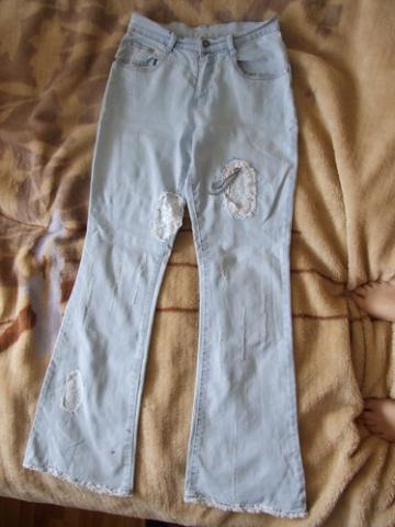 šviesūs džinsai su aplikacijomis. Gal 38d.