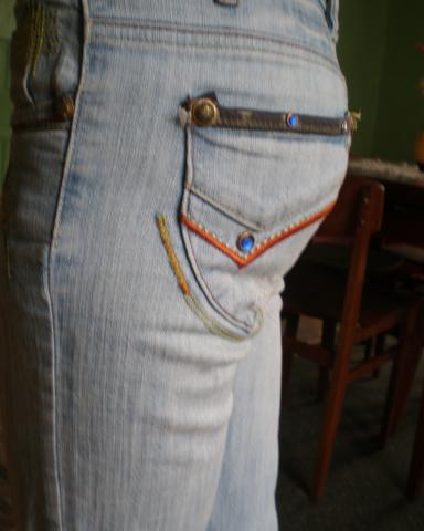 Šviesus, vietom truputį paplėšyti džinsai, 26 dydis, nuo klyno 80 cm, visas ilgis 99 cm, per liemenį 37,5x2.