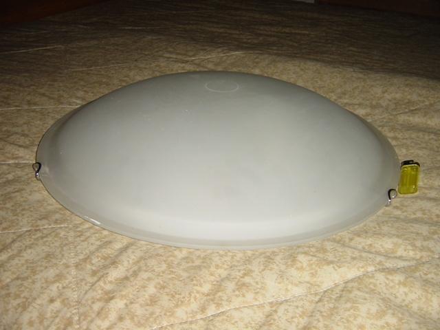 Stiklinis pakabinamas ant lubų švietuvas, skersmuo apie 50 - 60 cm. 3x60W lemputės.