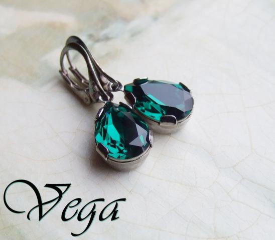 Emerald swarovski kristalai juodo metalo aptaisuose. Auskarų ilgis su užsegimais 3 cm