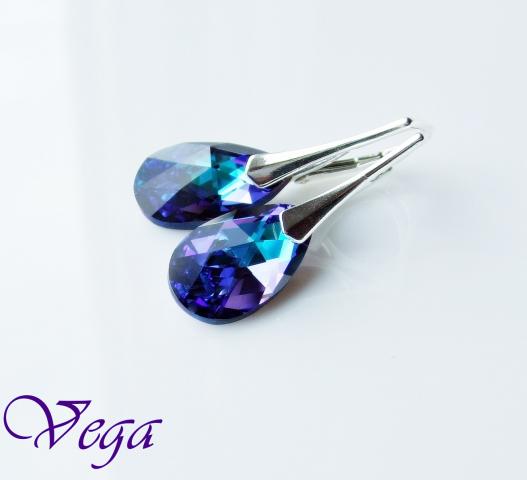 Swarovski heliotrope kristalai, sidabras. Ilgis 3 cm su užsegimu