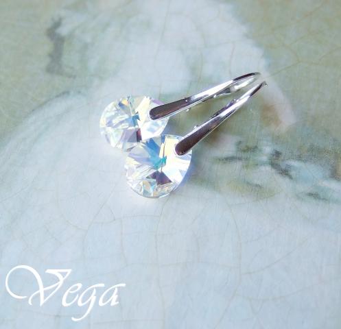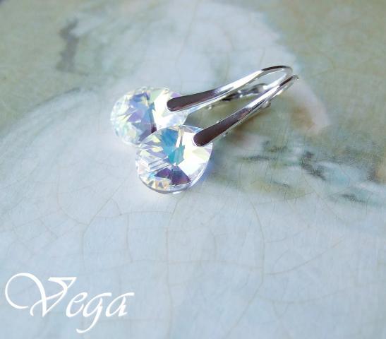 Swarovski kristalai crystal AB (12 mm)(keičiant kampą, mainosi spalva).Viso ilgis 2.5 cm. Sidabras.